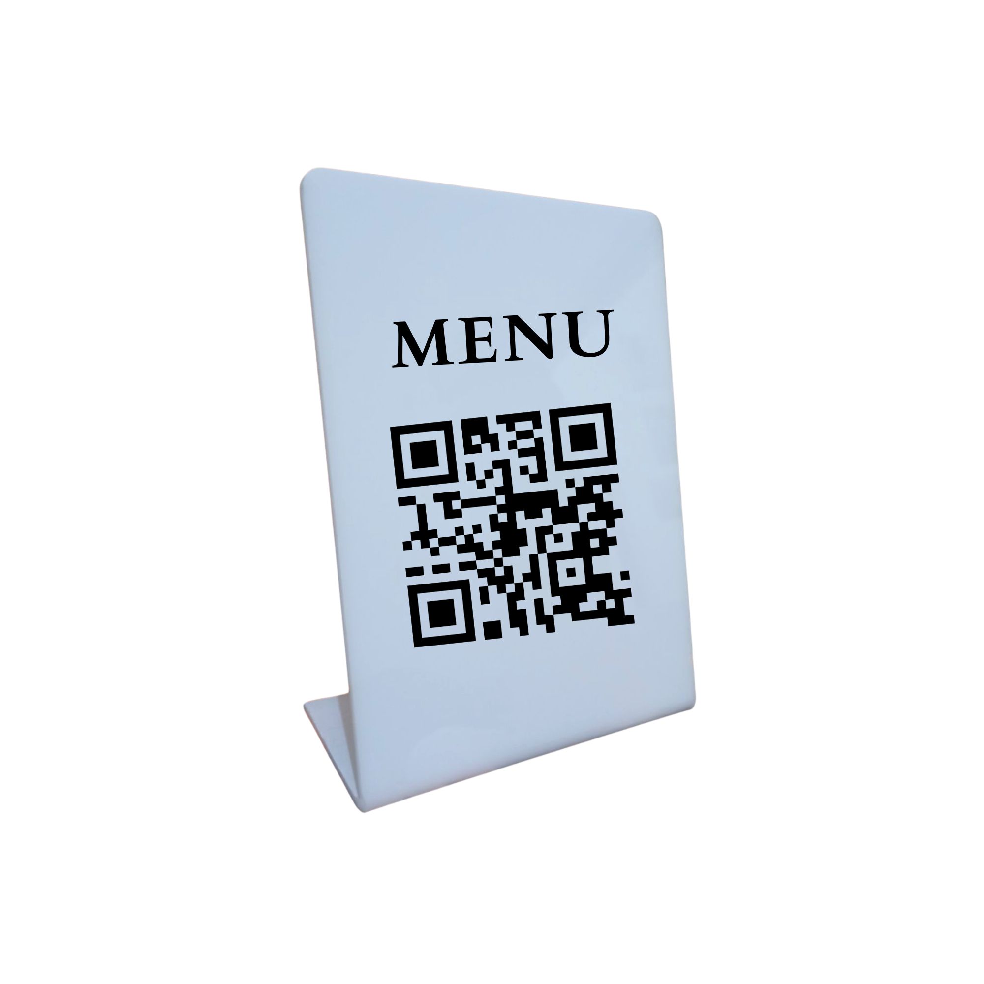 Plexiglass Επιτραπέζιο Stand με QR code για εκτύπωση εξατομικευμένων QR codes (online menu, Google Reviews, Social Media Προφίλ ή και λογότυπο).